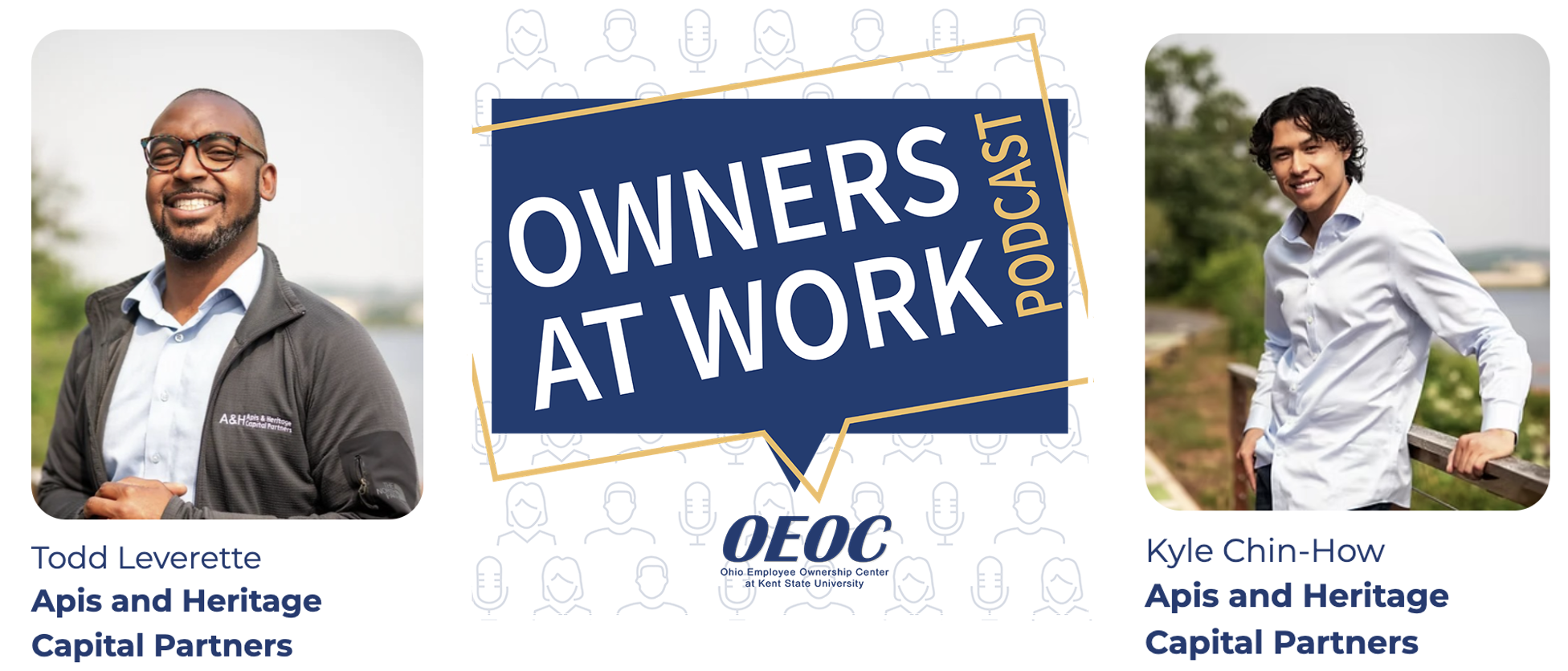 Worker ownership is a proven strategy for helping owners of businesses retire well while helping to build wealth opportunities for workers, many of whom historically have been left out of opportunities for ownership. The Ohio Employee Ownership Center at Kent State University interviewed Todd Leverette and Kyle Chin-How of Apis & Heritage (A&H) to learn about how they are helping to make it easier for owners to sell their businesses to workers. Check out highlights from the podcast below and click play to hear the complete episode. To tune in to more episodes of Owners at Work, visit the Ohio Employee Ownership Center, here.